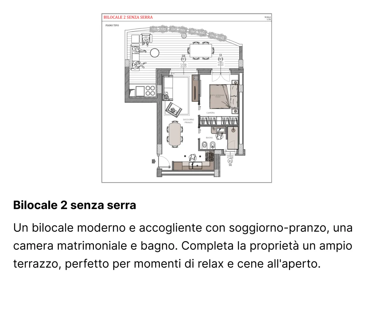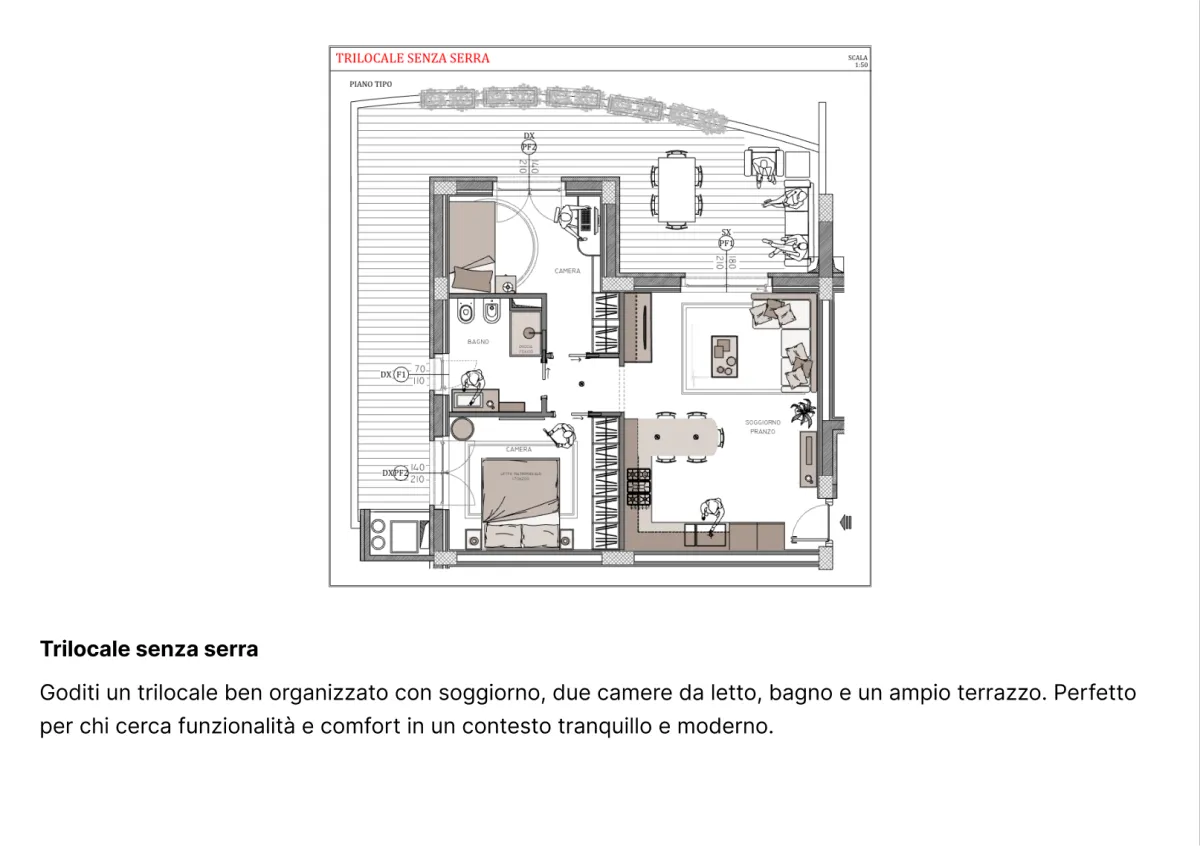 Con il supporto di un tecnico specializzato, puoi personalizzare ogni aspetto del tuo appartamento: divisioni interne, pavimenti, rivestimenti, punti luce e prese elettriche
